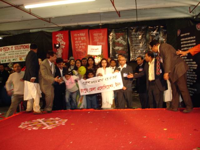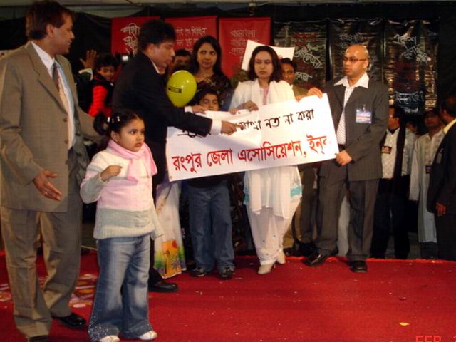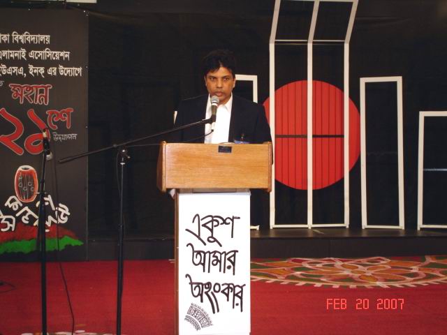 The President of the Association ABM Mizanul Hasan making speech on temporary Shaheed Minaar at NTV building, Long Island City, New York.